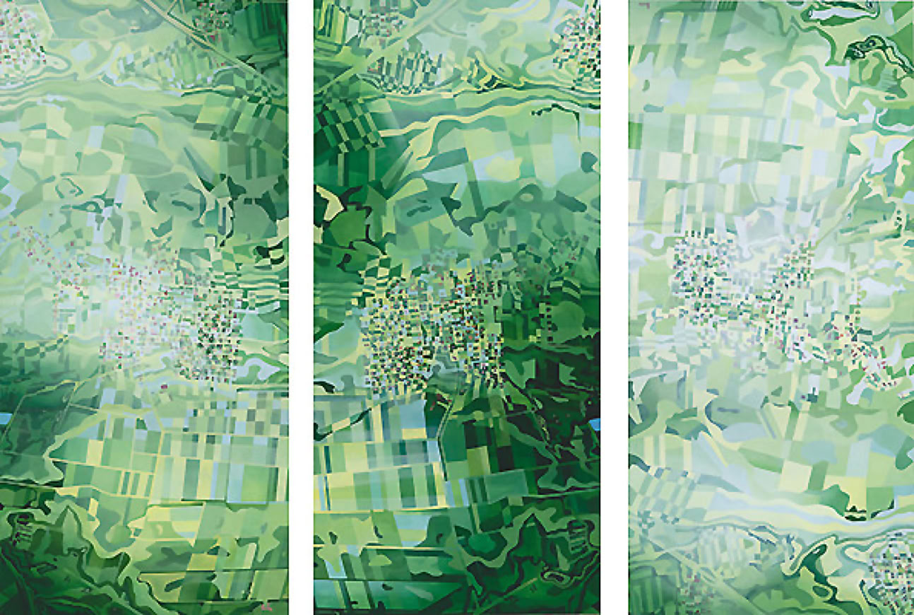 Hinter den langen Bergen3-teilig/ 2007/ je 150 x 70 cm/ Acryl/ Papier/ MDF