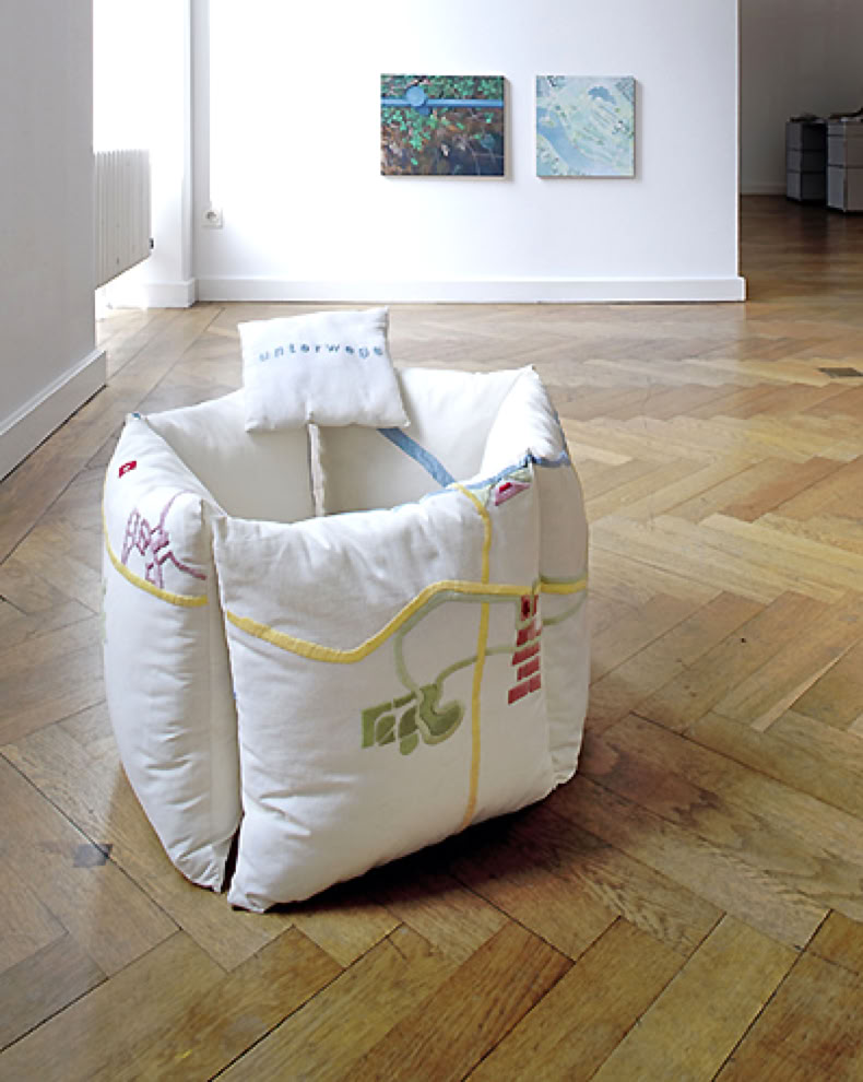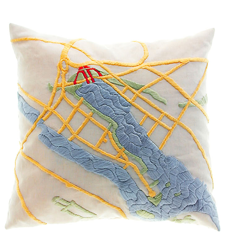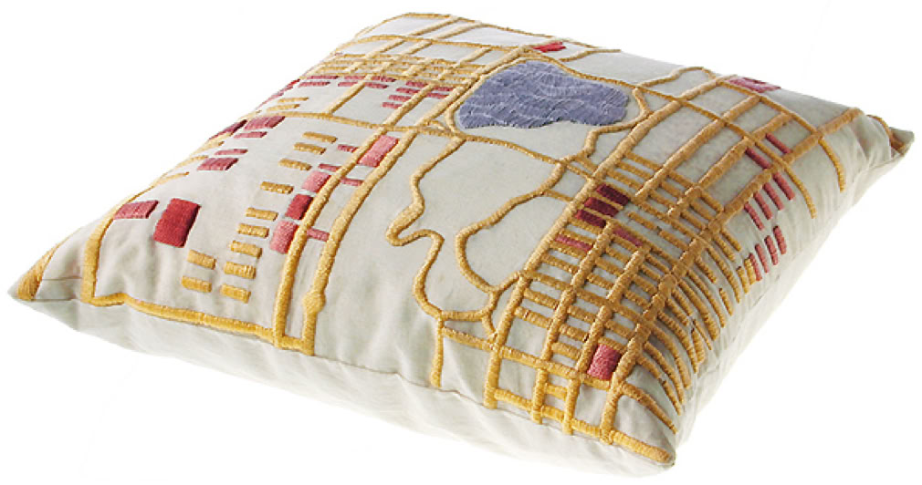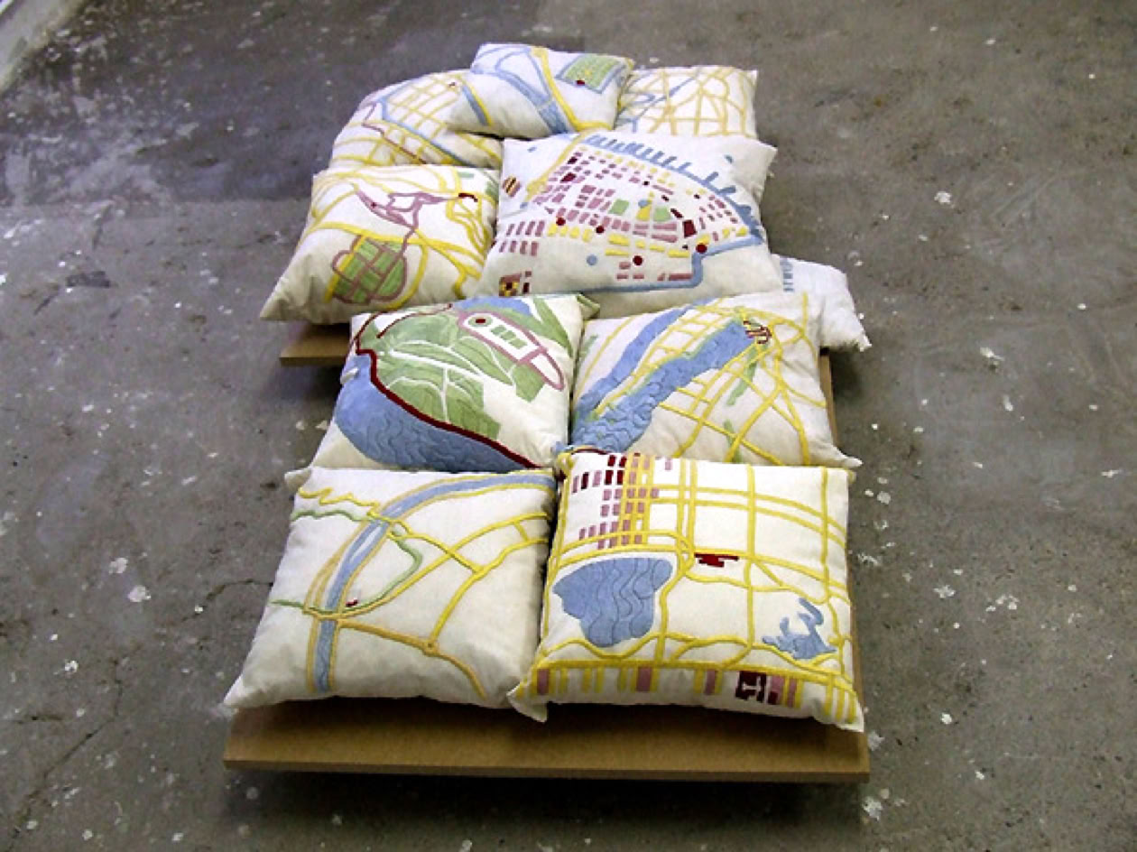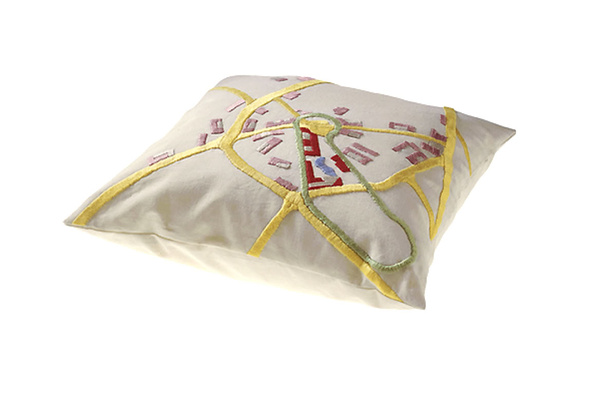 Städtekissen/ 2001/ 40 x 40 cm/ Stickgarn auf Nessel